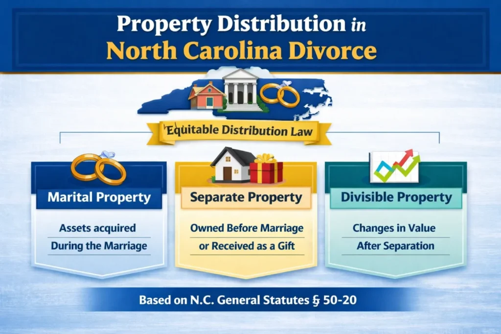 In North Carolina, property division follows the equitable distribution framework established under state law. This framework allows courts to review different types of property and determine whether they should be included in the distribution process.